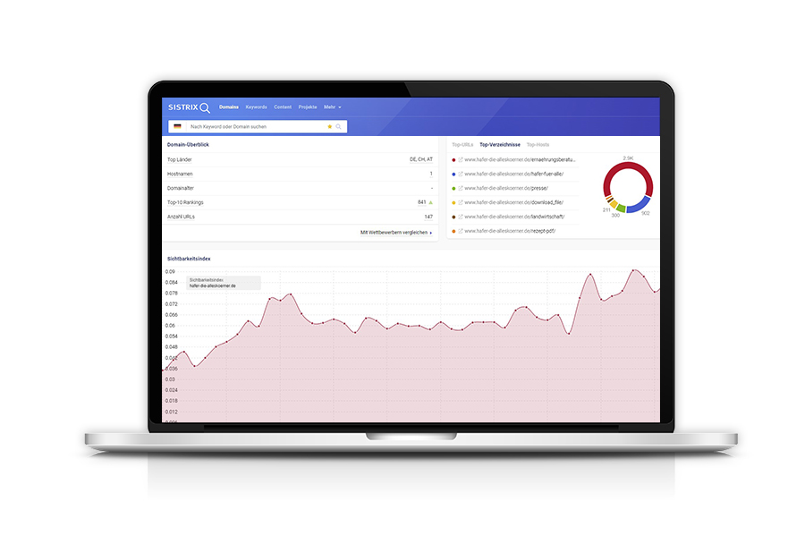 Wir arbeiten mit SISTRIX, dem meistgenutzten Tool für Suchmaschinenoptimierung. Damit bieten wir Ihnen umfangreiche Möglichkeiten der Analyse Ihrer Website, um Sie in der Suchmaschine nach vorne zu bringen.
